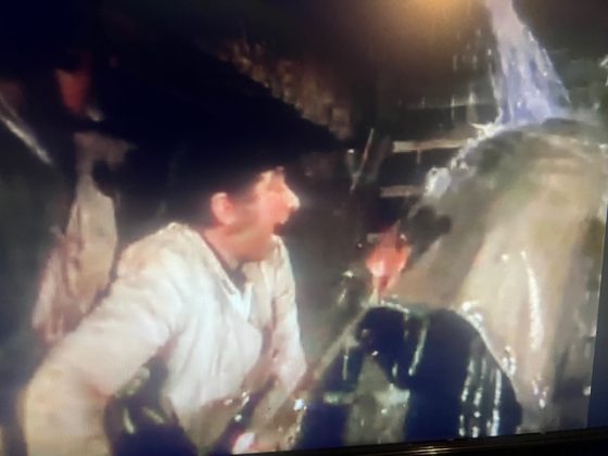 After the deluge might well described the set later in the week scenes of huge waves pouring through the foc’sle and companion way were filmed with the aid of a cunningly contrived water shute high up in the roof.