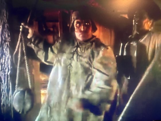 Equally deft was the manner in which the first mate Arrow played by David Davies is ‘lost’ at sea by Long John Silver. A plate of plum duff and free access to the rum bottle paves the way for his hasty exit from this life in the turbulent seas.