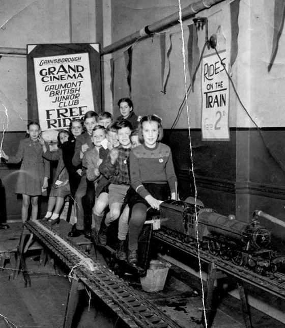 BELOW – that same Gaumont Cinema in Gainsborough givng these youngsters an exciting Saturday morning no doubt.